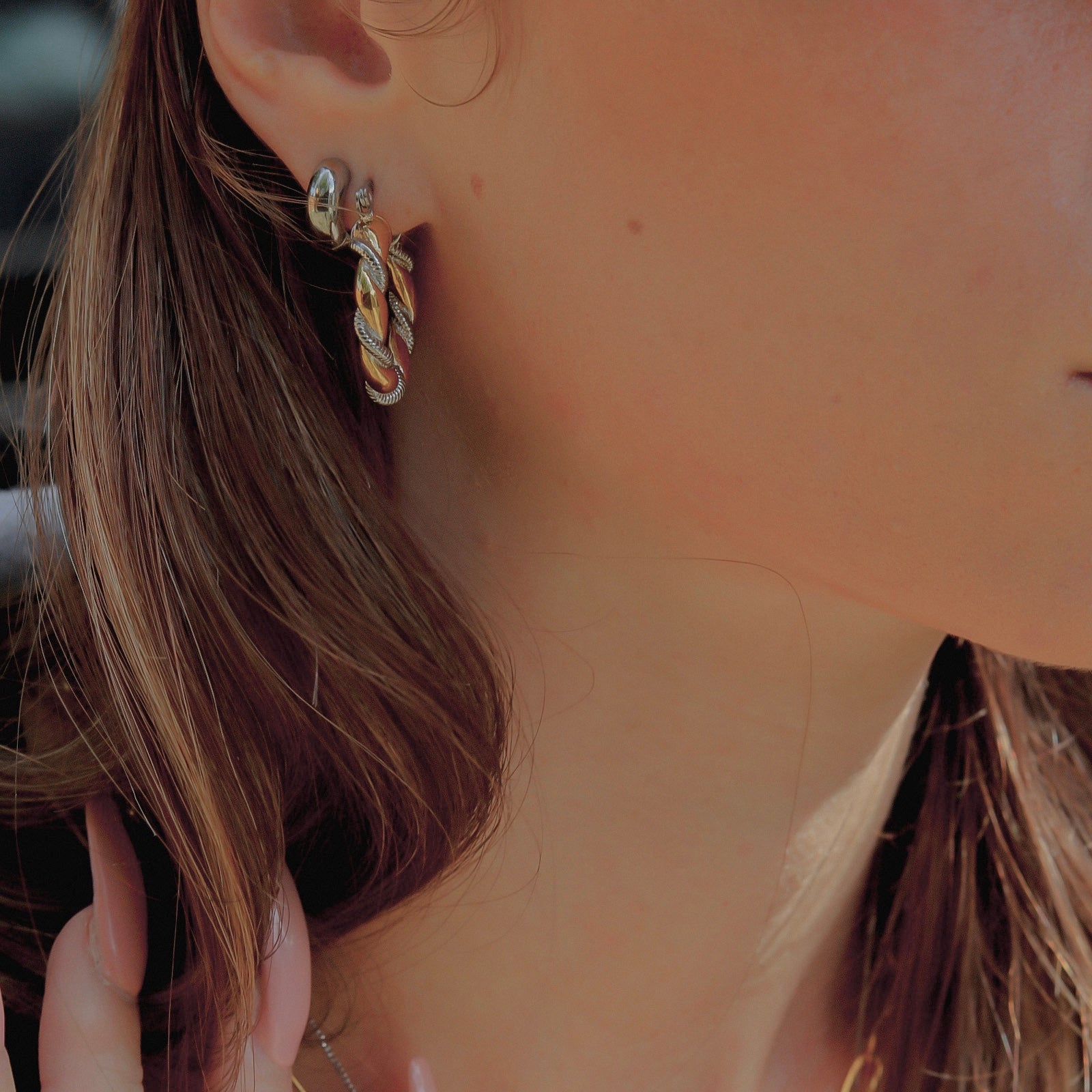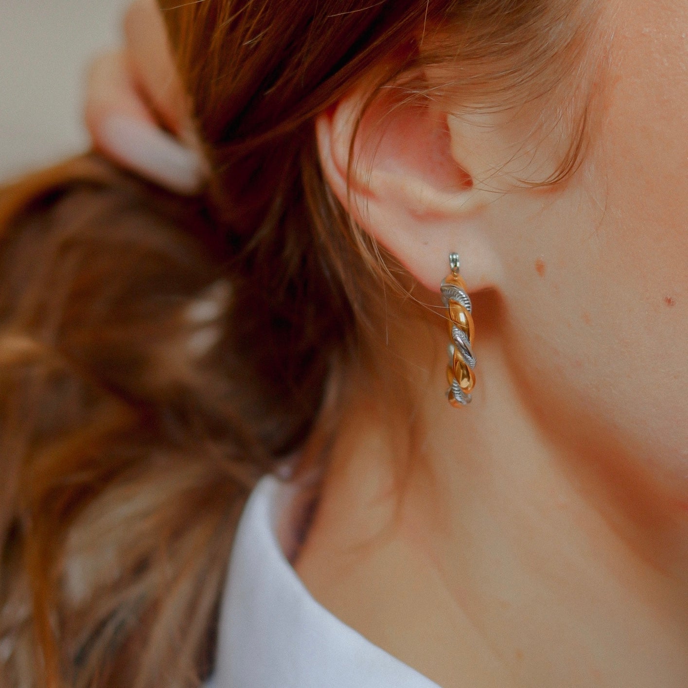 Twisted two tone hoops whenever you feel like layering you golds and silvers together.